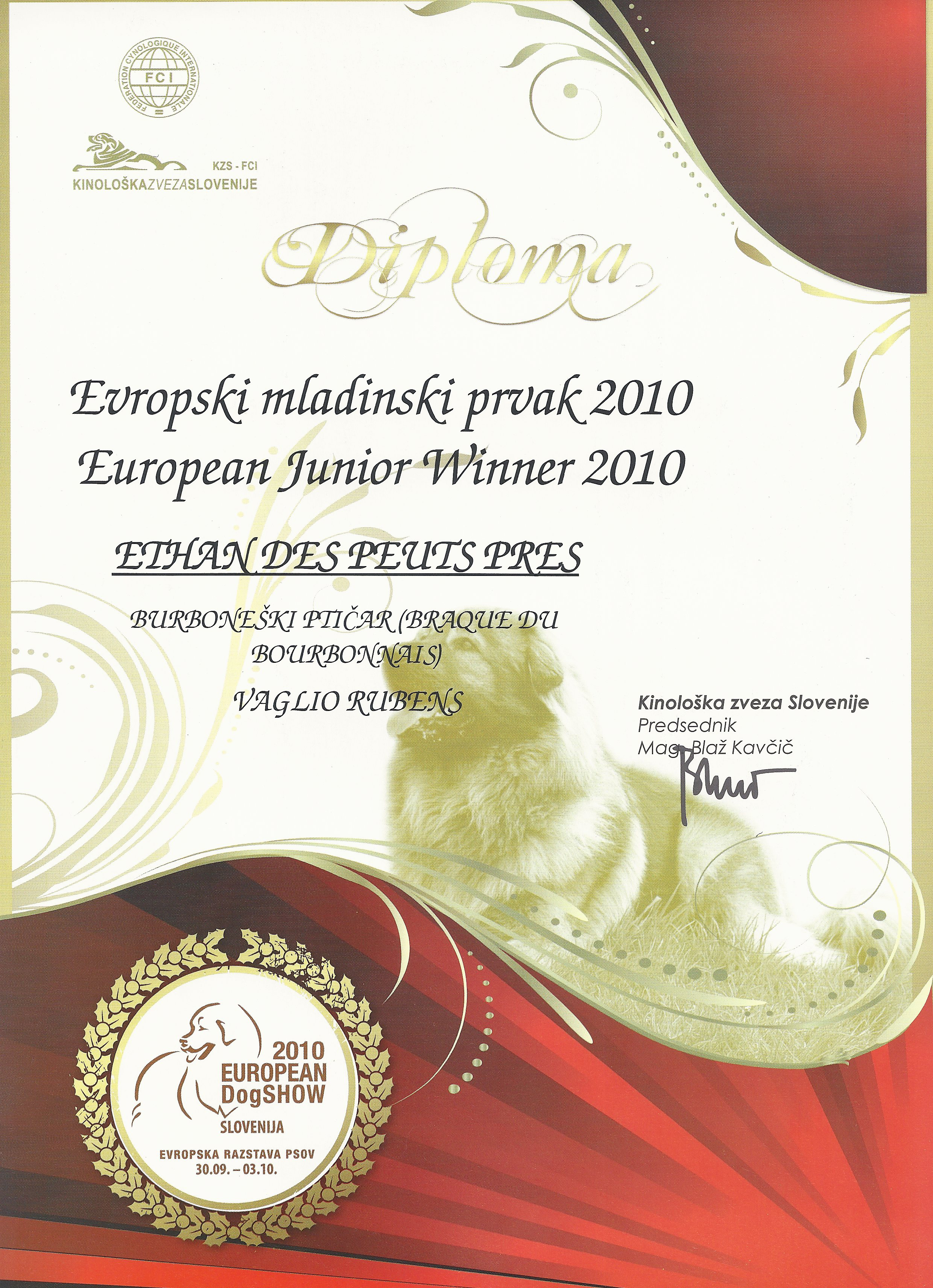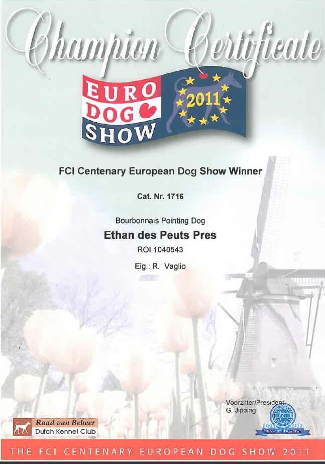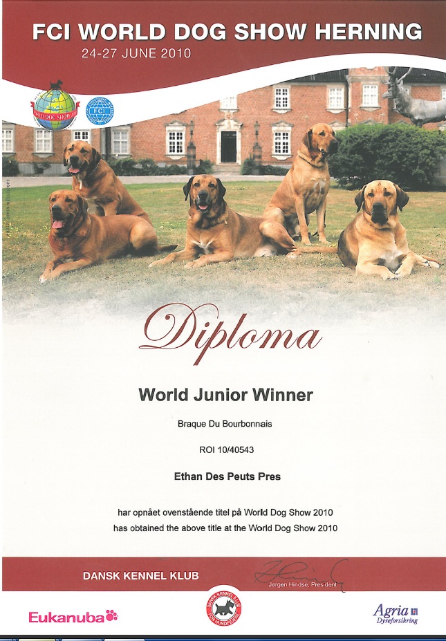 Avec ce titre de vice-champion du monde, Ethan des Peuts Prés pedigree enrichit encore la liste de titres obtenus. Un grand bravo à Rubens Vaglio qui met tant d'énergie à faire connaitre le Bourbonnais en Europe: